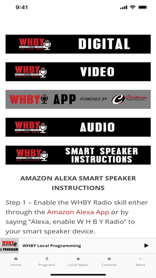 Thank you for using the WHBY Radio app. Features include: Listen Live, Local News, Podcasts, Contact the Studio, and more!