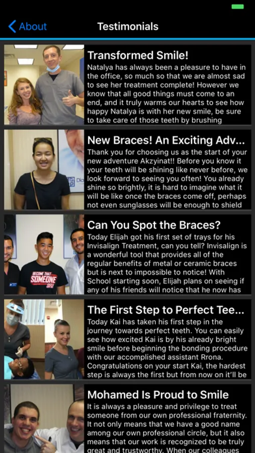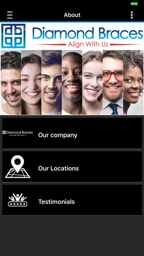 Diamond Braces app provides everything you need to learn about or interact with Diamond Braces. New to our practice? You can tour our offices, read about our services, and even request a consultation. As a patient or responsible party, you can view or schedule reminders for your appointments, make payments, see animations and more.