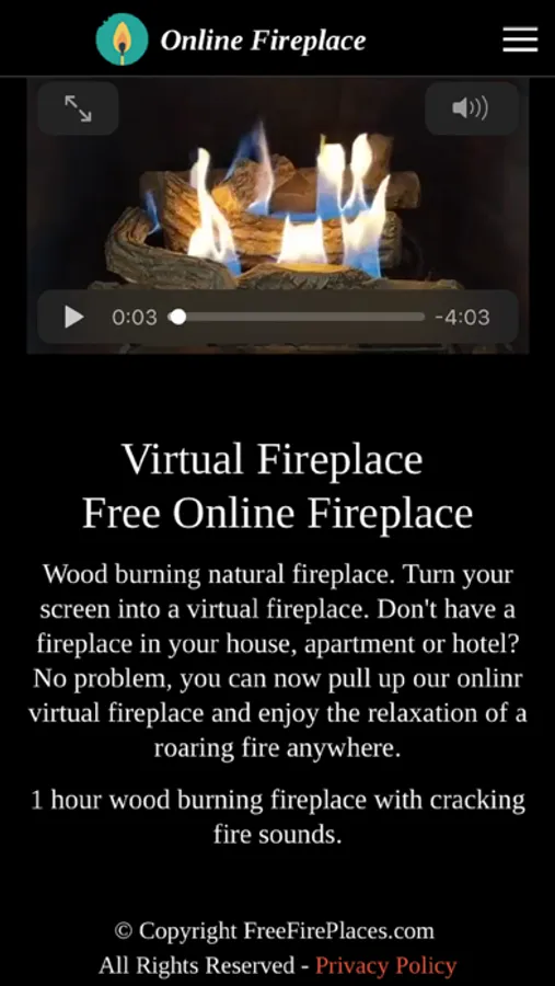 Need an instant romantic setting for that special date? Want a relaxing crackling fire playing in the background while you curl up with that new book? Need a soothing sound/video to fall asleep to? Turn on Fireplace!