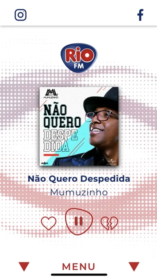 E, aqui no aplicativo oficial da Rio FM, você ainda pode acessar nossas páginas nas redes sociais e mandar mensagem para a gente.