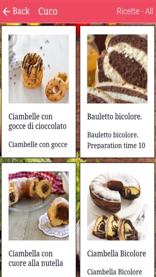 À l'intérieur, vous trouverez uniquement des recettes italiennes pour les entrées, les plats principaux de viande et de poisson, les plats d'accompagnement et les desserts.