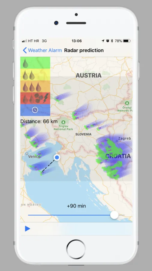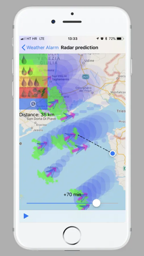 This application is especially suitable when you are having outdoor activities like hiking, skiing, motorcycling, biking, ... or it can remind you, that you have to move your car in a safe place when a hail is coming towards you.