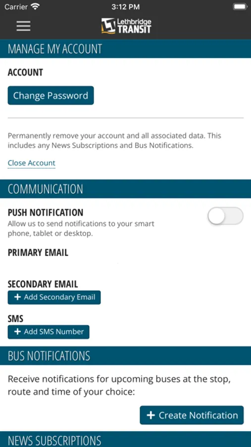 With the Lethbridge Transit account you can subscribe to the transit news you need. Subscribe to any or all of the routes and get route specific information that you need for your trip.