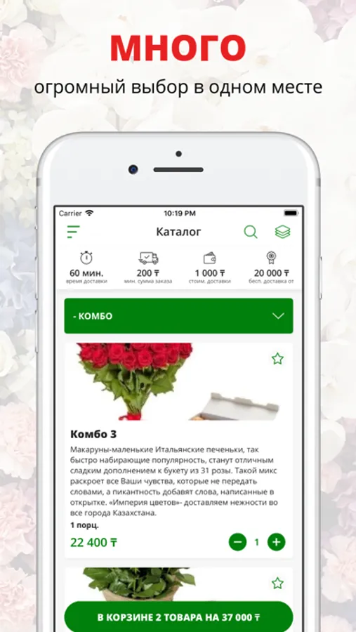 Доставка цветов по всему Казахстану, быстрое и удобное оформление заказа