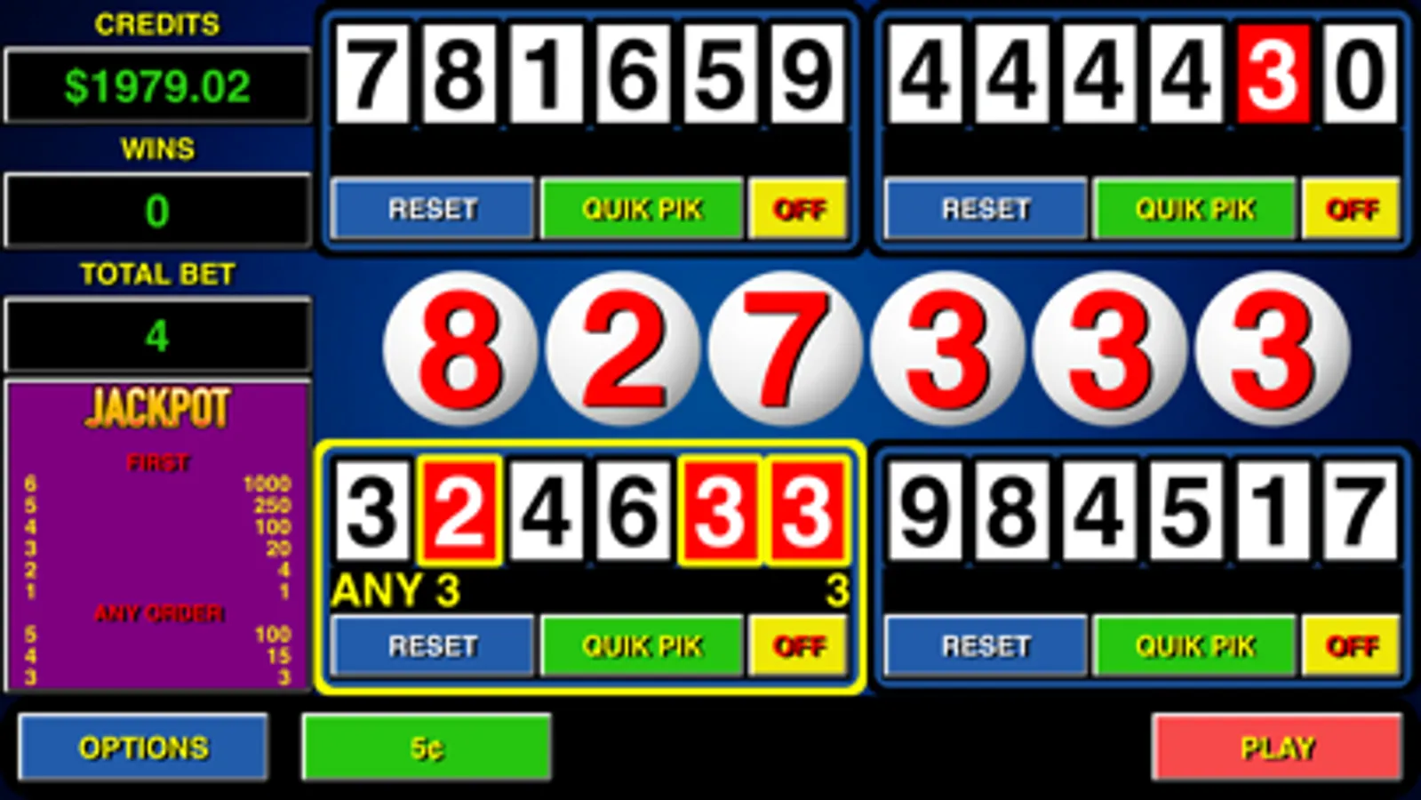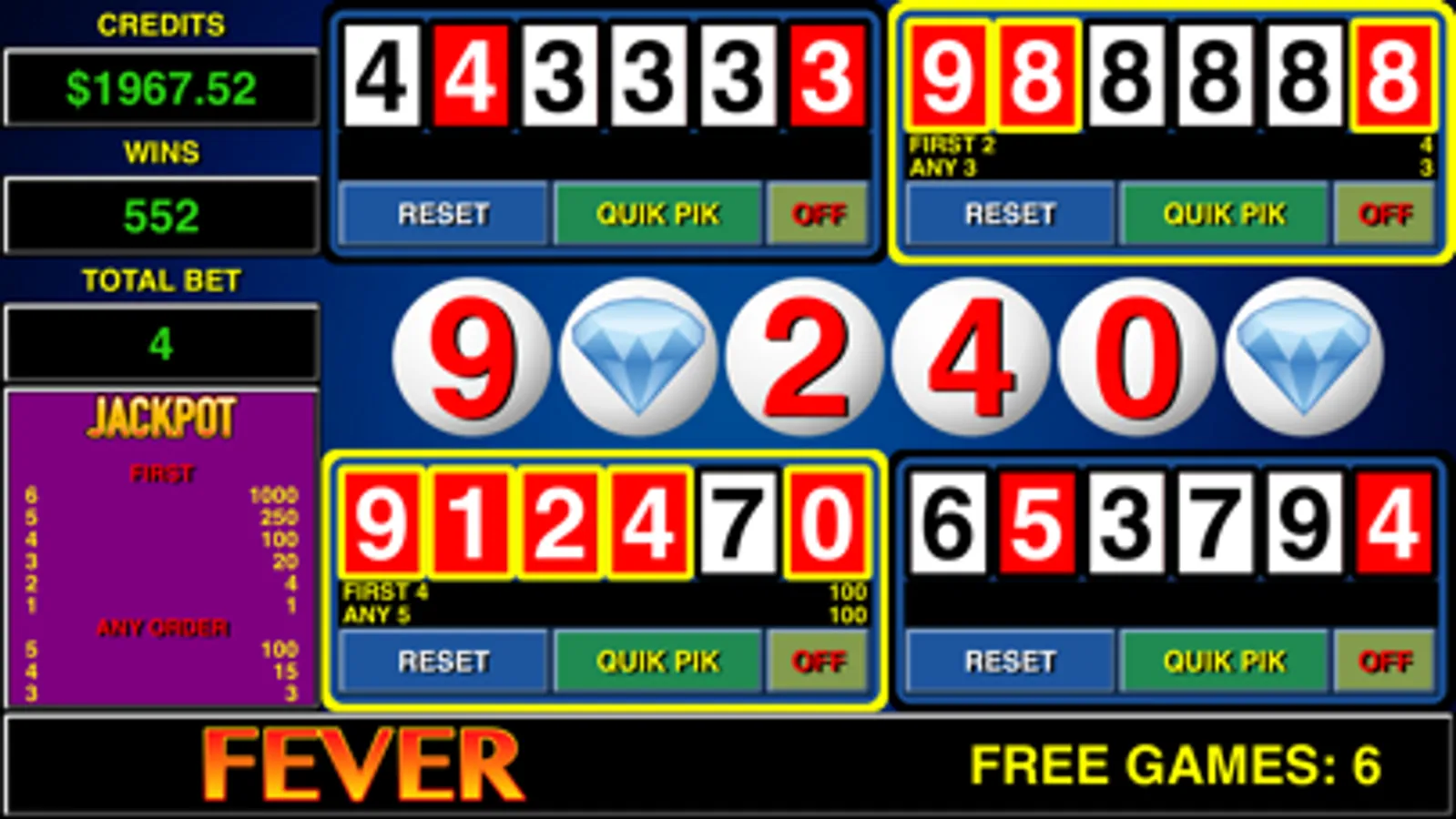 * KENO 4 MULTI CARD - play 4 cards at once!