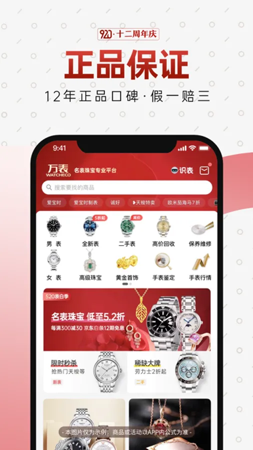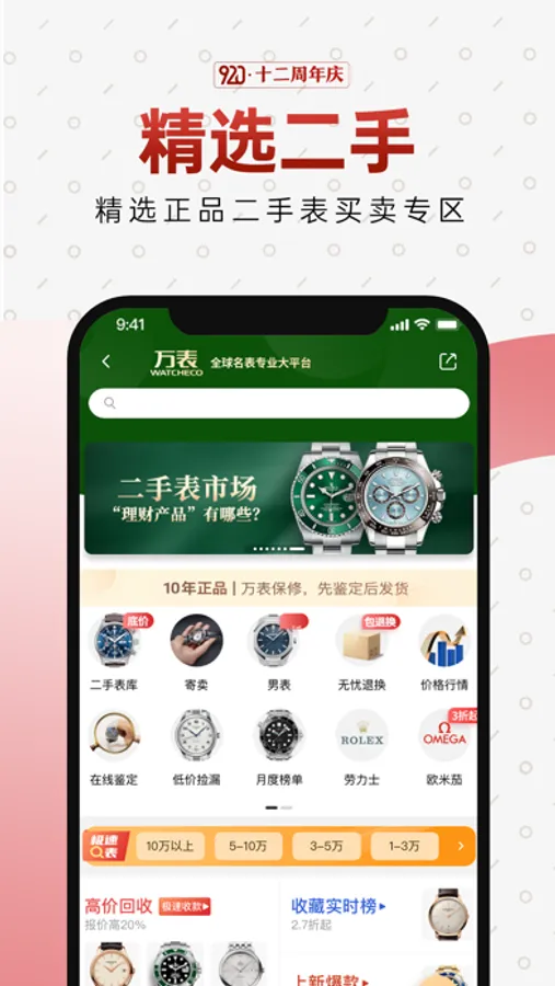 万表APP是全球影响力的名表珠宝专业平台,中国知名的名表珠宝电商,专业的二手表交易平台。万表更多专业服务:珠宝高端定制、全球手表行情查询、手表回收、手表寄卖、手表鉴定、AI识表、手表维修保养、手表珠宝视频、直播、手表珠宝资讯、百科。十二年专注正品,赢得了良好的口碑,有钱人都上万表!
