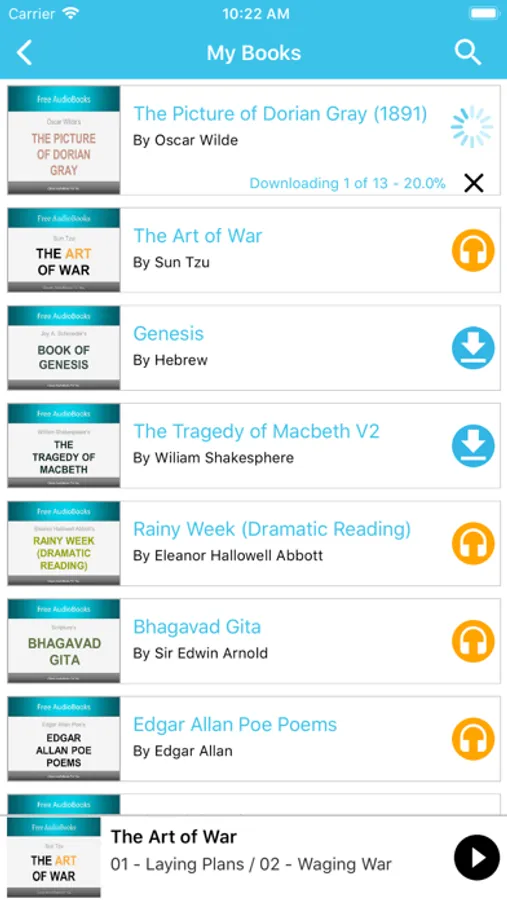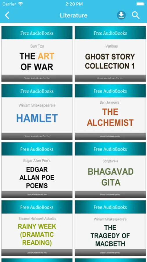 This audiobook app has a library of 50+ best handpicked public domain literature audiobooks for free. Download an audio book to your phone and start listening to a great story instantly.