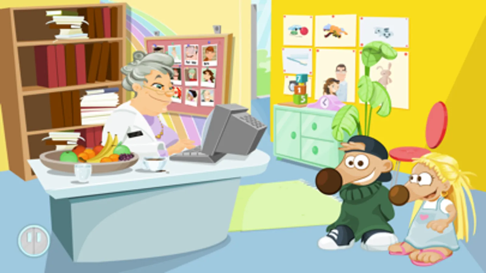 Fra start følger du Rigo og Reggae ind på hospitalet. Du bliver modtaget i det der på et hospital kaldes en receptionen. Her møder du sekretæren Sanne, der fortæller om sig selv og lidt om hospitalet.