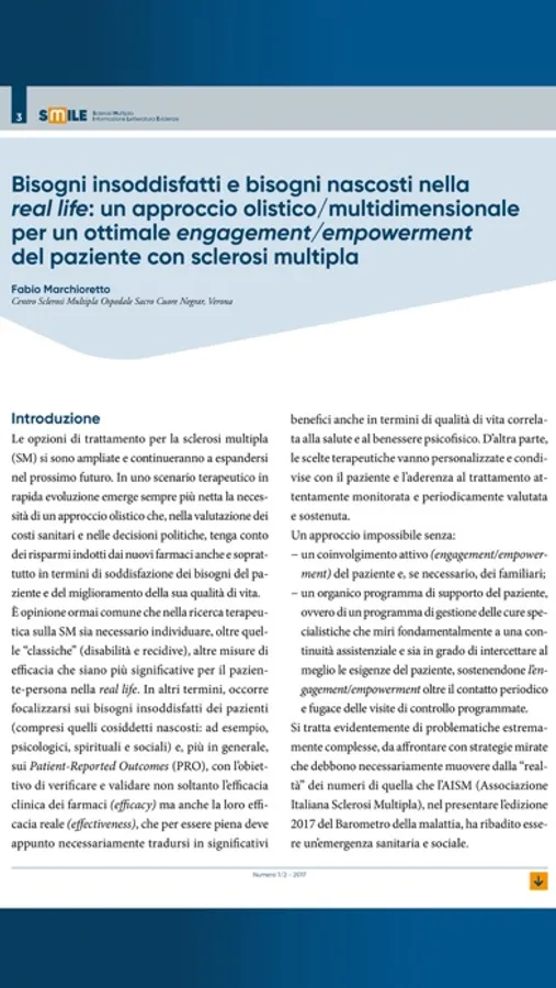 La versione digitale della rivista sarà arricchita dalla presenza di videointerviste realizzate presso i numerosi Centri SM sul territorio nazionale e ai più importanti Opinion Leader della Neurologia, in merito alle più recenti evidenze derivanti dallo scenario terapeutico della patologia, in continua evoluzione.