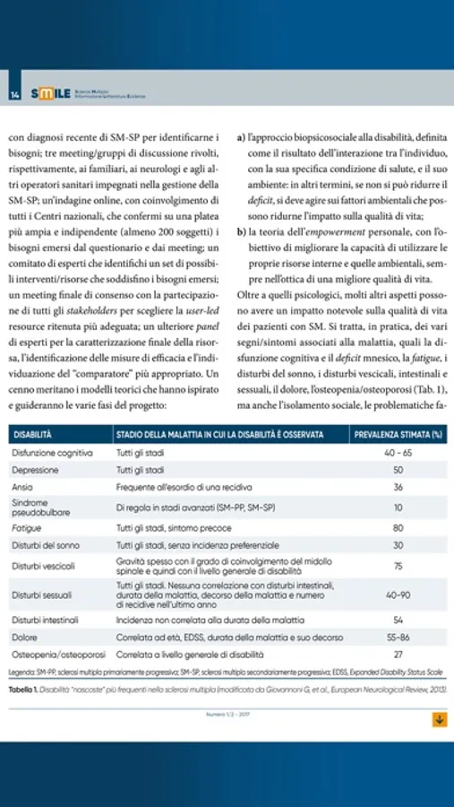 La rivista, pubblicata anche in versione cartacea, contiene articoli originali, interviste ai Centri di Sclerosi Multipla sul territorio nazionale, brevi rassegne bibliografiche sulle più recenti evidenze della letteratura in tema di diagnosi e terapia della Sclerosi Multipla (SM) e nell’ultimo numero di ogni anno una selezione di alcuni dei temi di maggior impatto clinico sviluppati nei due appuntamenti più prestigiosi in tema di SM, come il Congresso Nazionale SIN ed il Congresso ECTRIMS (European Committee for treatment and Research in Multiple Sclerosis) che ogni tre anni si celebra congiuntamente con ACTRIMS (Americas Committee for treatment and Research in Multiple Sclerosis), uno degli eventi più attesi per chi si occupa di SM.