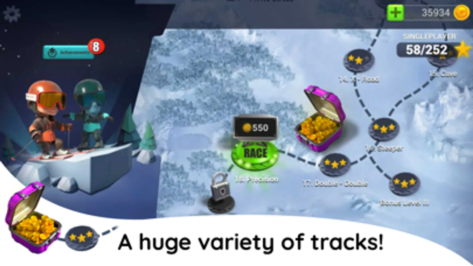 Unlock awesome skier and snowboard characters. Race in fun and challenging single player levels or defeat your opponents in multiplayer mode!