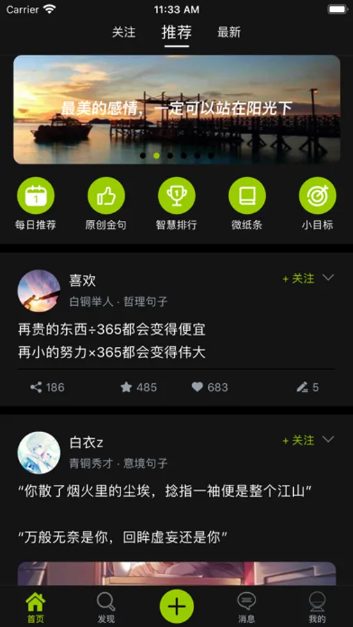 【微句】致力于打造创意共鸣的金句文案创作和阅读社区,努力让阅读和创作成为每个人每天习惯做的事。包括: