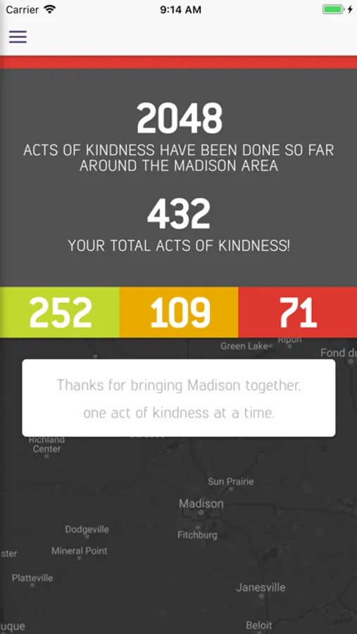 Adding kindness to your life every single day is the best way that we can make Madison brighter. The 432 Be Kind app gives you 3 simple ways you can show kindness to others in our community. Keep track of the acts you've completed, and save ideas for later.