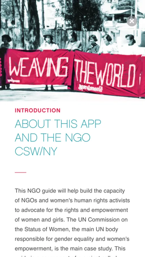 Language equals power at the UN. This Guide introduces you to the tools and knowledge you need to advocate at the UN. This app is based on the online printable booklet entitled " A Guide for NGOs and Women's Human Rights Activists at the UN and CSW". It is a training, educational tool and quick reference. The case study is the UN Commission on the Status of Women that oversees the implementation of gender equality and women's human rights policies in 193 countries.