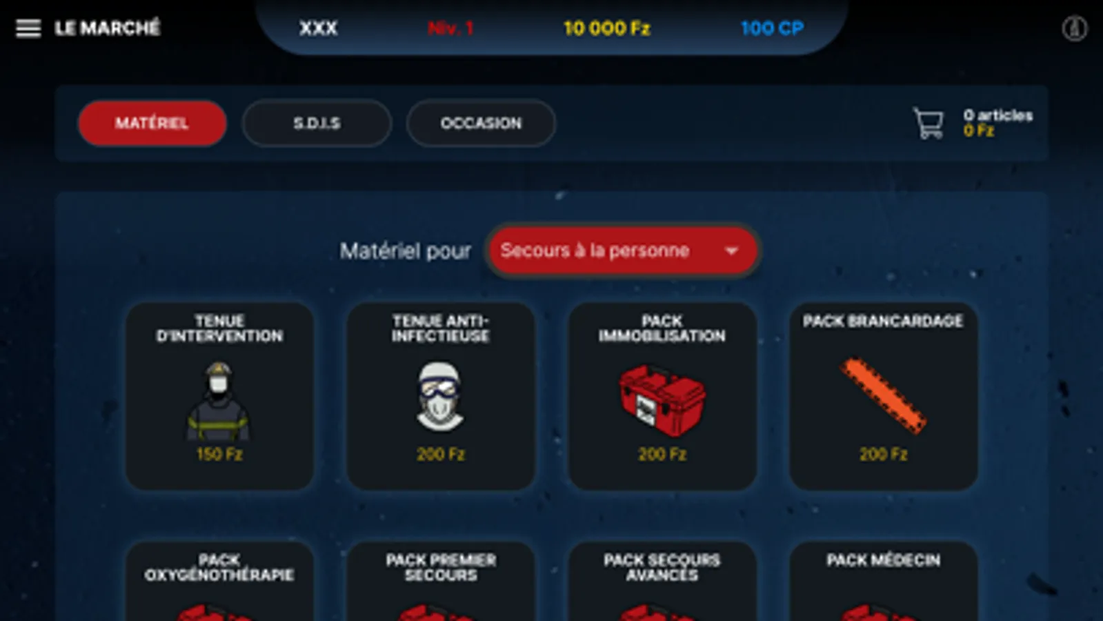 Tu vas pouvoir aussi acheter les différents équipements nécessaires pour les interventions, à commencer par les véhicules. Chacun a une fonction particulière, qui correspond à un type d’intervention. Choisis-les judicieusement et veille à leur entretien. Pour les acheter, tu devras gérer ton budget, exprimé en Firez (Fz).