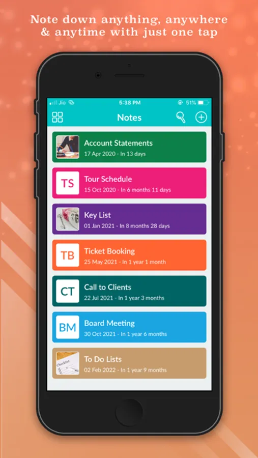 Note down anything, anytime, anywhere you want on just one tap and get also reminder notification for your note.