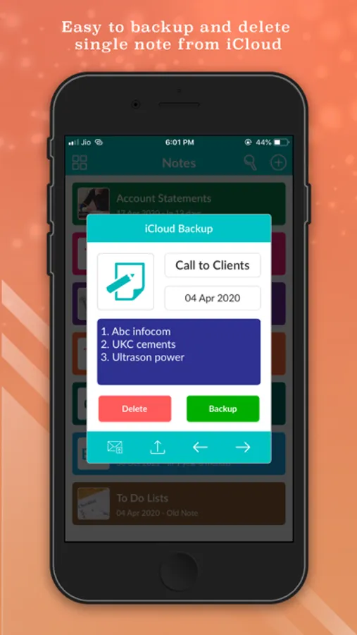 Sticky Notes provide iCloud sync features to save your note in iCloud. You can retrieve note from iCloud and also delete note from iCloud within the app.