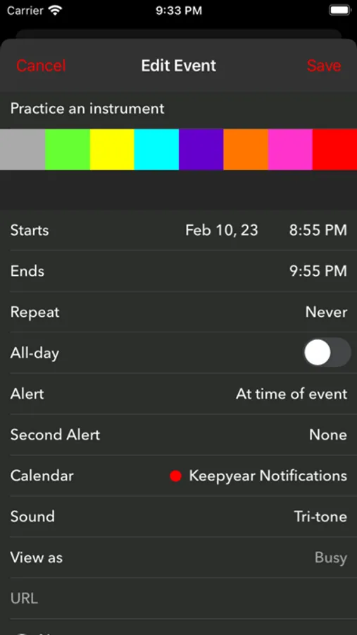 • For the notification event, select "Keepyear Notifications" in the calendar selection menu.