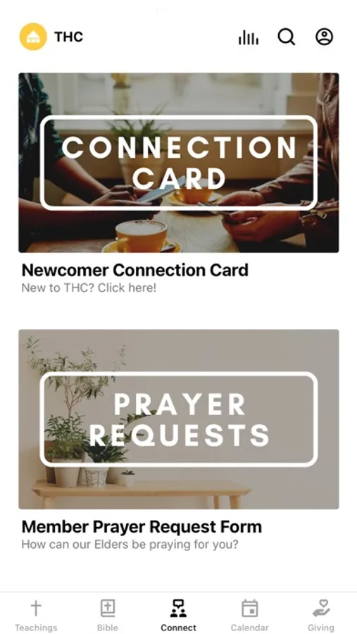 This app is packed with powerful content and resources to help you grow and stay connected here at THC. With this app you can: