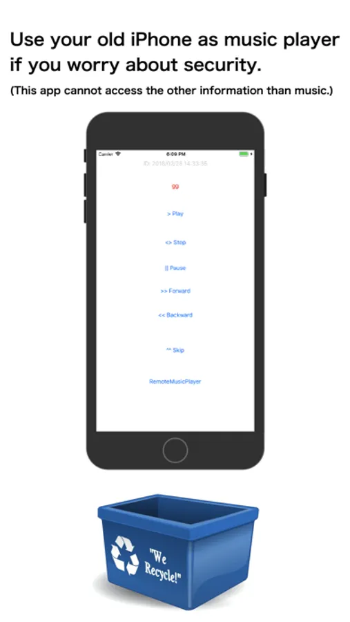 - Control signal can be received by the other App titled RemoteMusicPlayer.