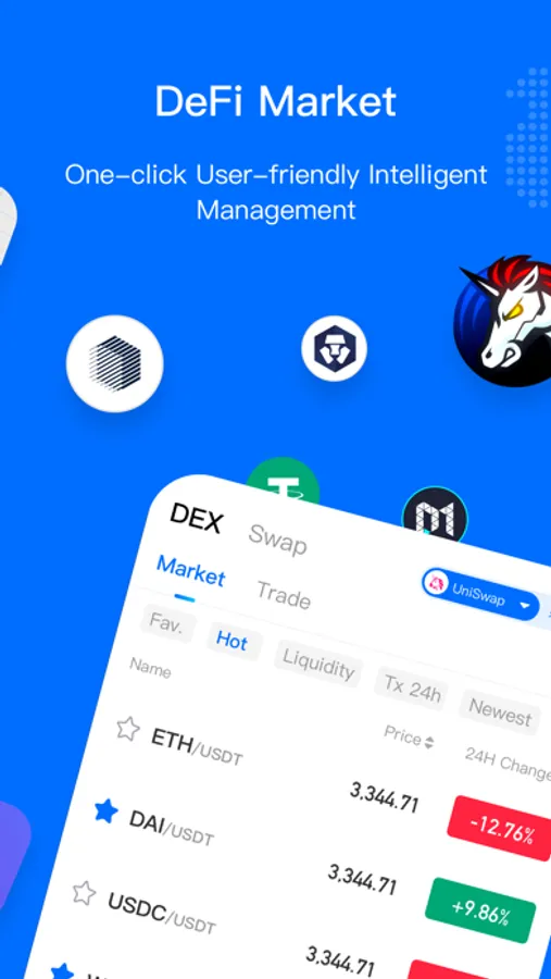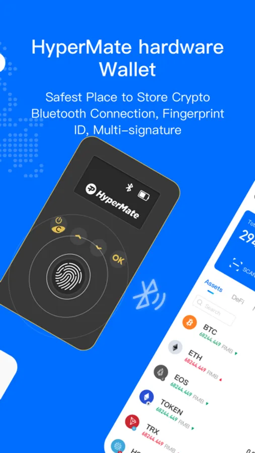 HyperPay off-chain wallet, currently supports 50+ mainnets and 157+ mainstream coins, and provides rich functions such as assets value-added, instant exchange, collateral loan, market tracking, multi-signature co-management; on-chain wallet also supports BTC/ETH-led 30+ mainnets.