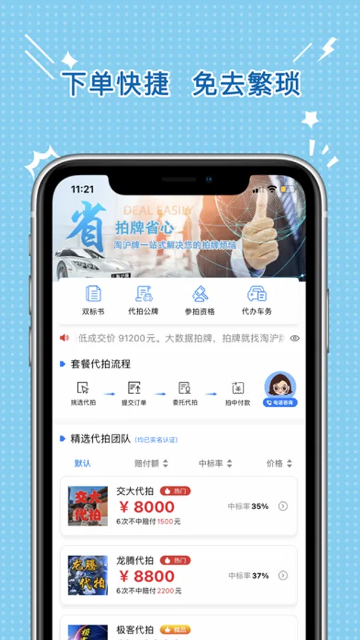 淘沪牌,专业的沪牌代拍平台,中标率高,拍中付款,拍不中赔钱。