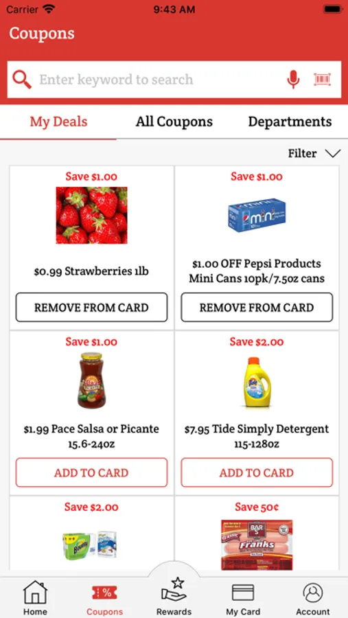 Claim as many coupons as you want with one simple scan! No more searching through mailers or printing out emails, J & R Market is bringing rewards right to your mobile device!