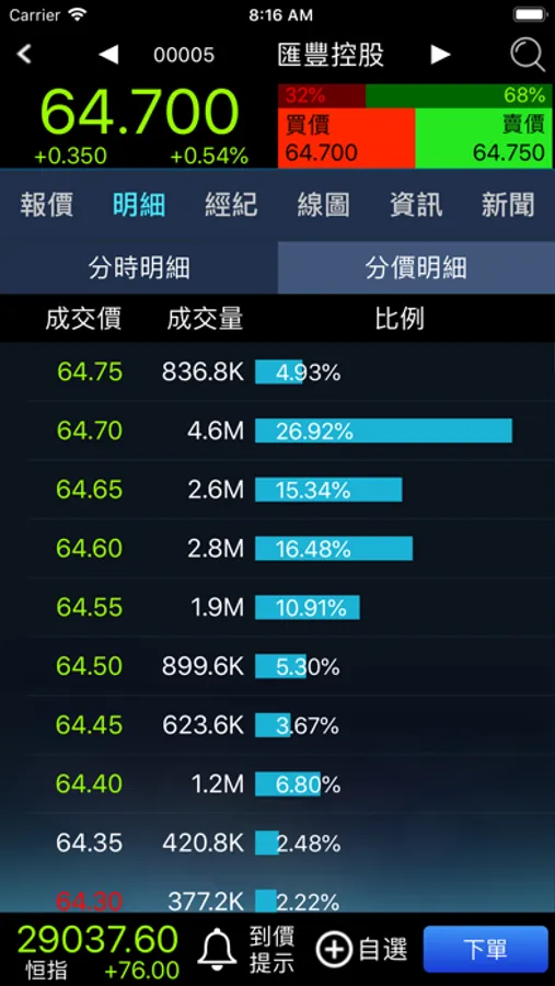- 即時港股串流報價、買賣盤及經紀排位、活躍股票排行、指數成份股、行業表現*