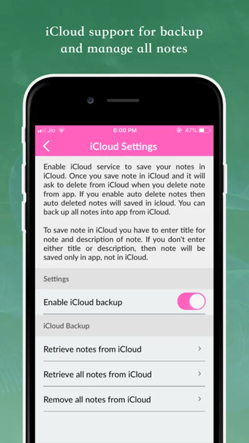 iNote app provide iCloud sync features to save your note in iCloud. You can retrieve note from iCloud and also delete note from iCloud within the app.