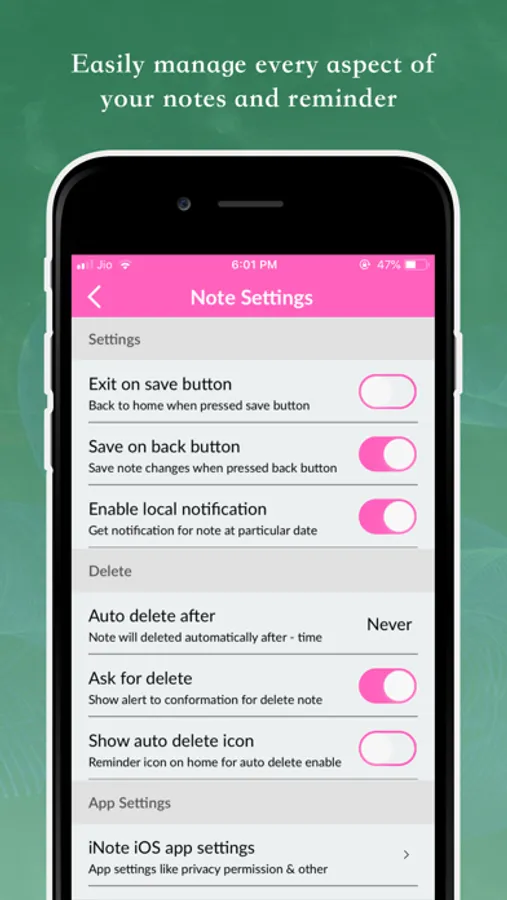 iNote app helps you to save and record your important and favourites data and memos with different colour, images, font size, font style and multiple type of passcode.