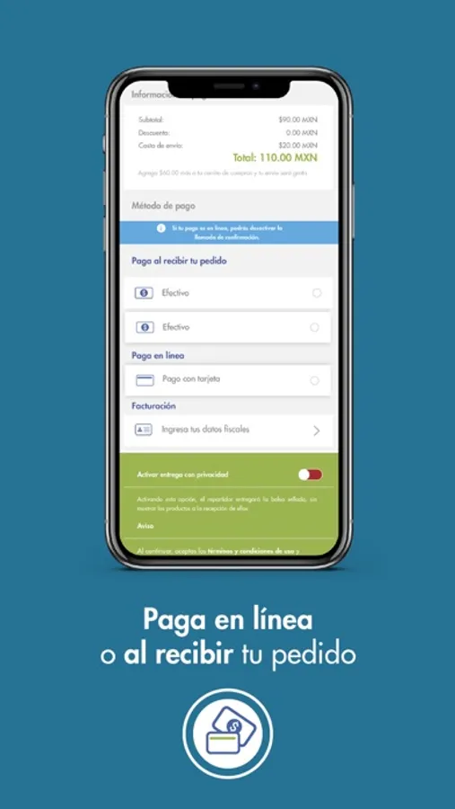 Activa “entregar con privacidad” para resguardar la discreción de tu pedido.