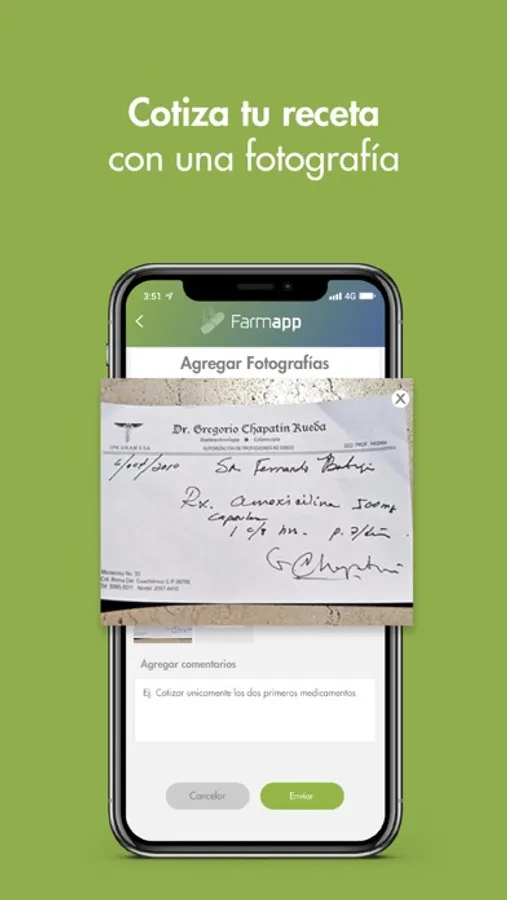 Cotizar tu receta con tan solo enviar una fotografía.