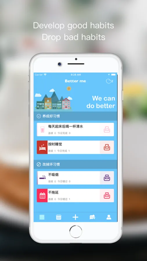 "Better me" is an application that helps you develop good habits and get rid of bad habits. Remind you to keep healthy habits and do better yourself every day.