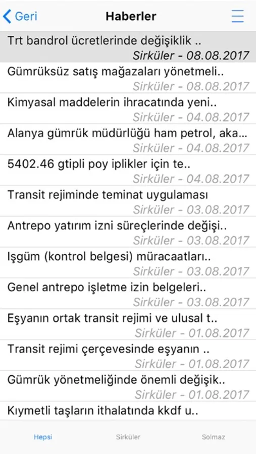Solmaz Smart Cep uygulamasında, gümrükleme, taşımacılık, depolama, serbest bölge ve finans modülleri bulunmaktadır. Uygulamanın Gümrükleme modülünde işlemdeki dosyalar takip edilip, anlık olarak sorgulanabilir. Finans bölümünden; anlık bakiye, dönemsel ekstre, fatura detaylarına erişilebilir.