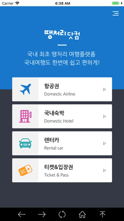 * 국내항공 국내취항하는 모든항공사(7개)의 모든 요금을 땡처리 국내여행앱을 통해 빠르고 쉽게 예약할 수 있습니다. 땡처리 국내여행앱에서는 추가과금이 전혀 없이 항공사의 가장 싼 항공권을 검색 및 예약할 수 있습니다.