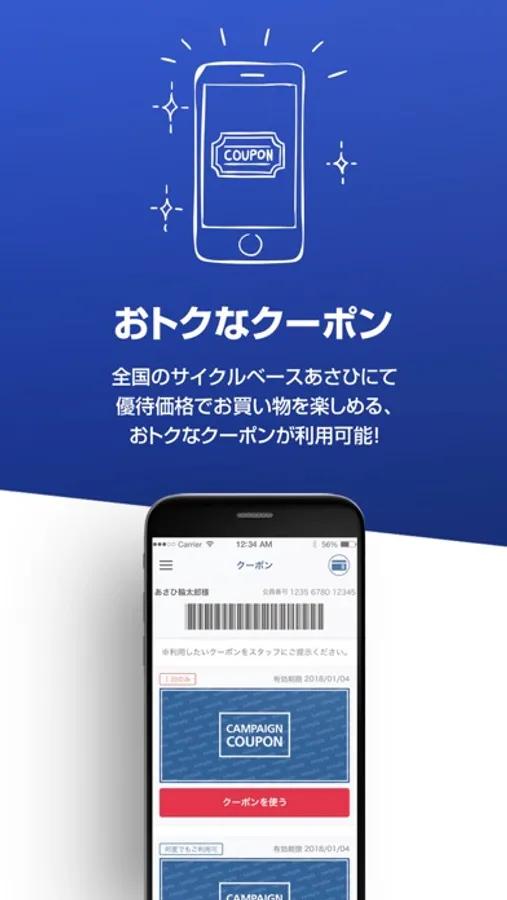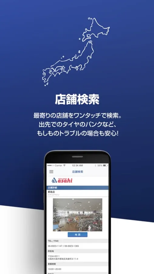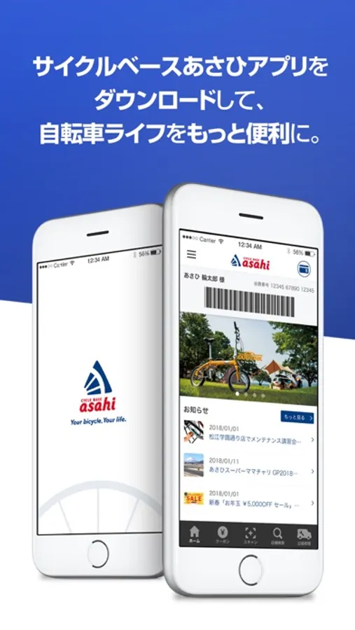 ショッピングからアフターサービス、もしものアクシデントまでをアプリひとつでケア!スマホに入れておく便利な自転車ツールとして、サイクルベースあさひのアプリが、あなたの自転車ライフをサポートします。