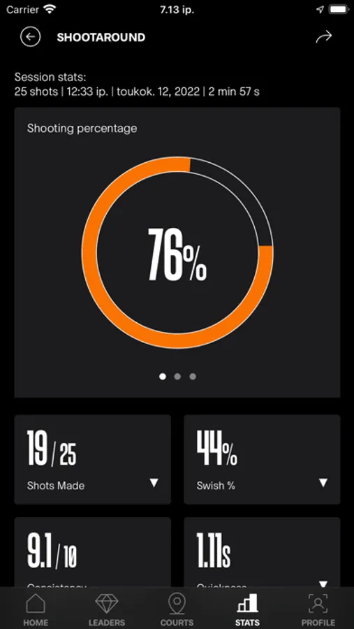 * shot accuracy (accuracy indicates the number of perfect shots, by tracking your improvement and focus to shoot perfect shots, your shooting percentage will improve)