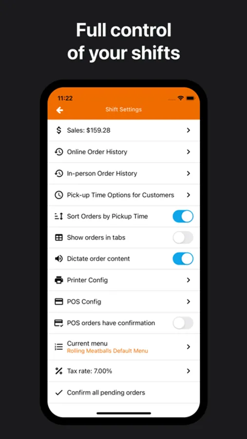 Take orders and receive payment through your phone or tablet. Reach customers at their office, a bar, or event with your menu, and make it easy for them to order and pay. Just confirm the order and when the food is ready, and the customer will be notified by text. Simple. Convenient. Easy.