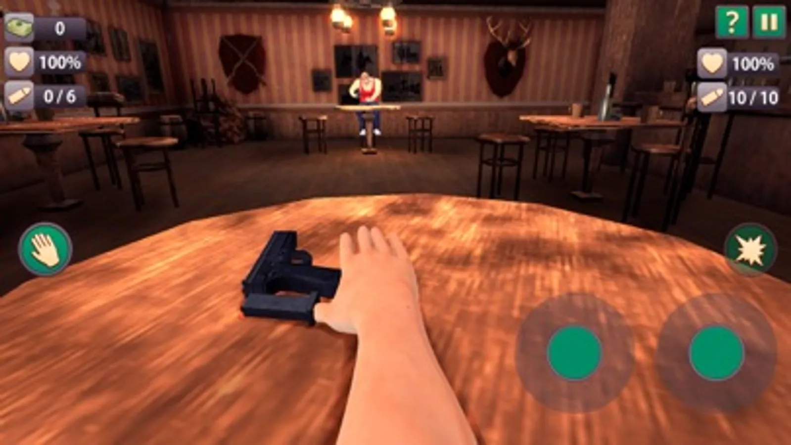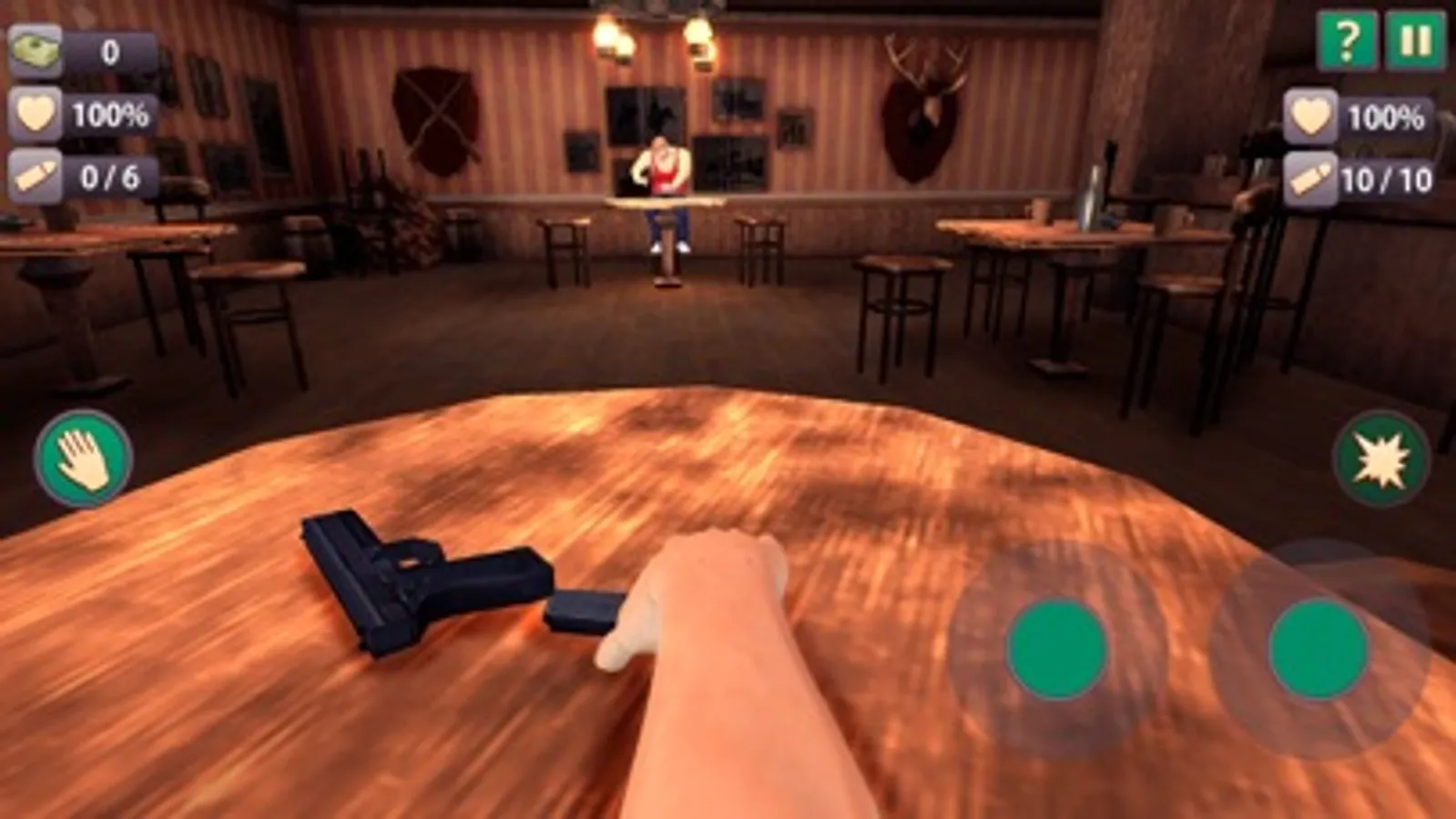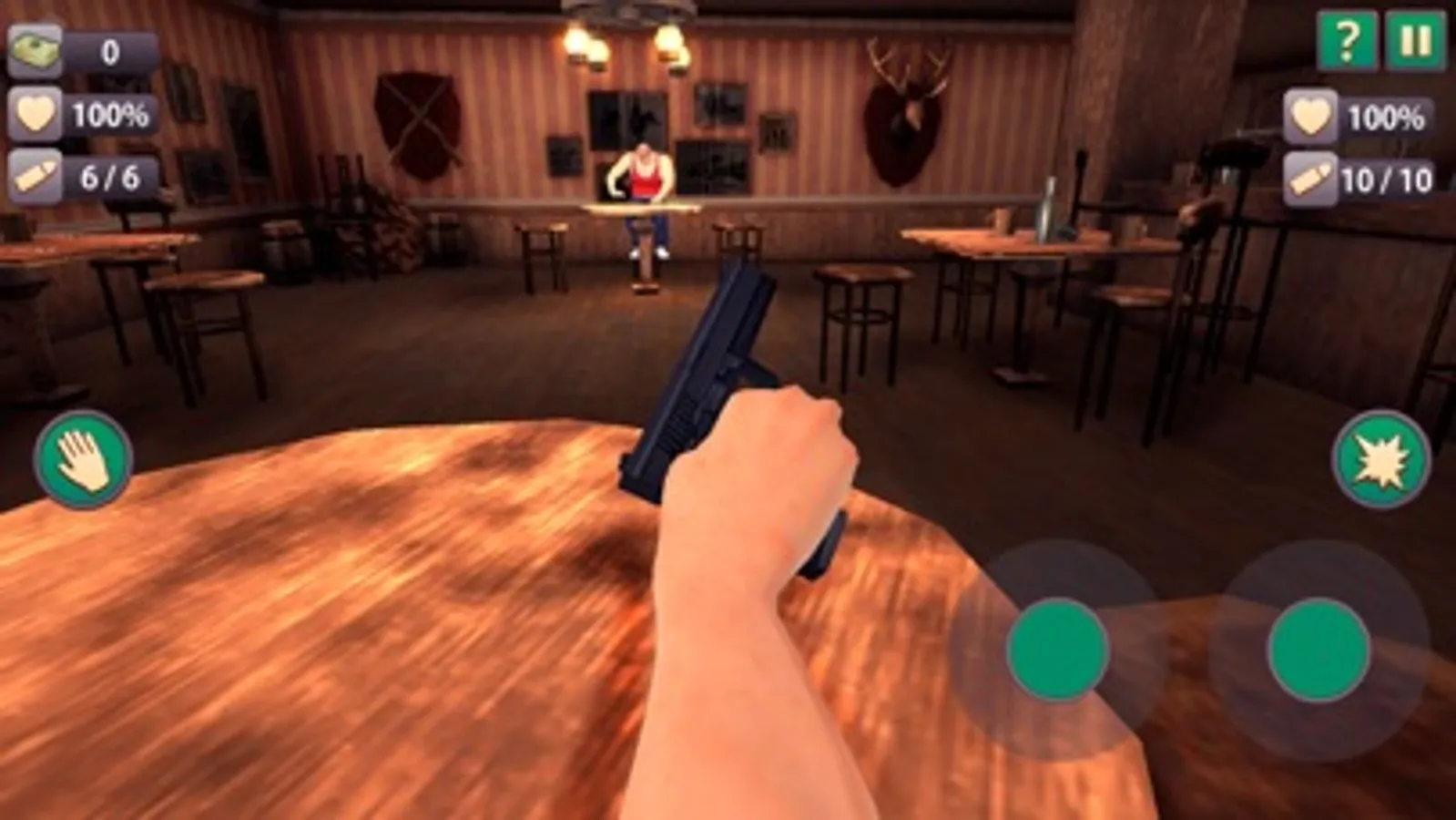 You will find yourself in a western saloon and will have to survive by being a fast and precise shooter! Load your gun and shoot your opponent to defend yourself and survive in this standoff! Start with easy opponents, train your arm directing skills and become the fastest cowboy in this town!