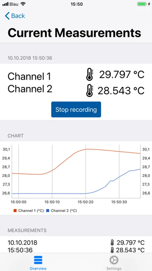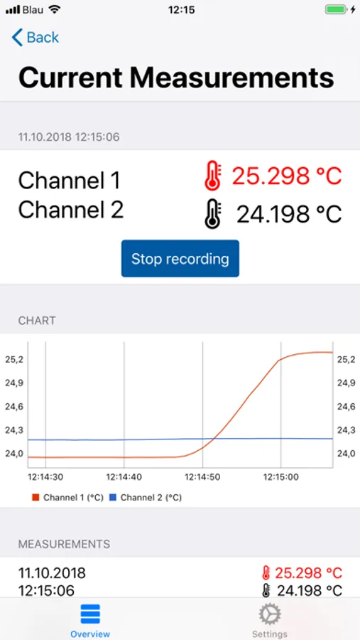 App for temperature measurement via measuring device P700/P755/P770/P790 with Bluetooth!