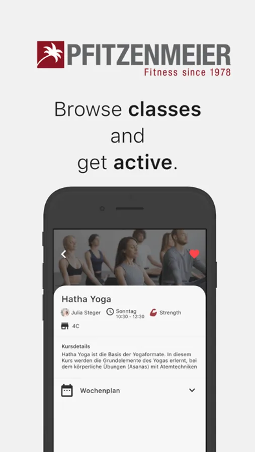 With your Pfitzenmeier app you are always in the loop on the goings on in your gym. Course schedules, Equipment and much more are available anytime. Want to visit another Pfitzenmeier gym? Get all the information on all gyms right here on your phone. Quick and easy.