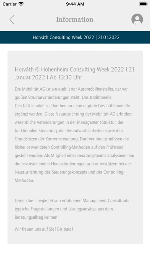 Horváth on Campus‘ ist die digitale Ergänzung zu den Campus Events von Horváth & Partners. Informieren Sie sich im Vorfeld über die Agenda und die Kolleginnen und Kollegen, die Sie am Workshoptag kennenlernen werden. Nutzen Sie die App, um uns Ihre Fragen und Wünsche vorab mitzuteilen und vernetzen Sie sich mit anderen Teilnehmerinnen und Teilnehmern sowie mit uns. Die App ermöglicht eine interaktive Gestaltung des Workshops sowie ein einfaches und schnelles Feedback Ihrerseits, um unsere Events kontinuierlich zu verbessern. Wir freuen uns auf Sie!