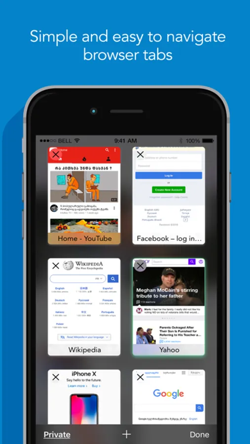 - Unlimited Tabs - Simultaneously load as many pages as you want and smoothly switch between them