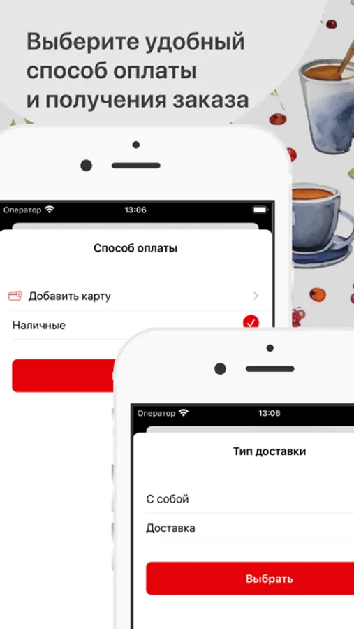 Укажите время, когда хотите прийти за своим заказом или выберите доставку с указанием времени и адреса доставки.