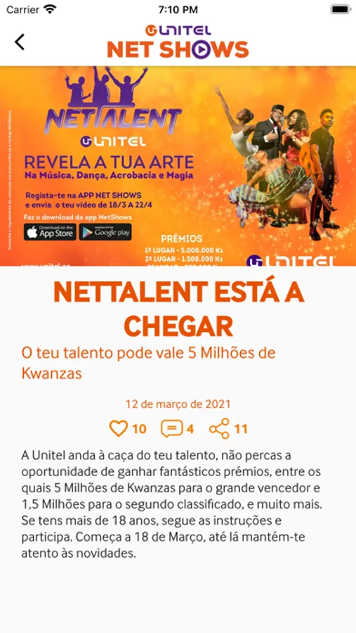 O Unitel NetShows é uma aplicação de streaming de vídeo Angolana onde podes encontrar conteúdos nacionais como Filmes, Curtas Metragens, Shows, Documentários, Aulas e muito mais.