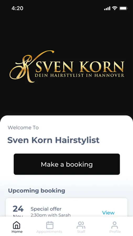 The Sven Korn Hairstylist app makes booking your appointments and managing your loyalty points even easier. You're just a few taps away from feeling good and looking great!