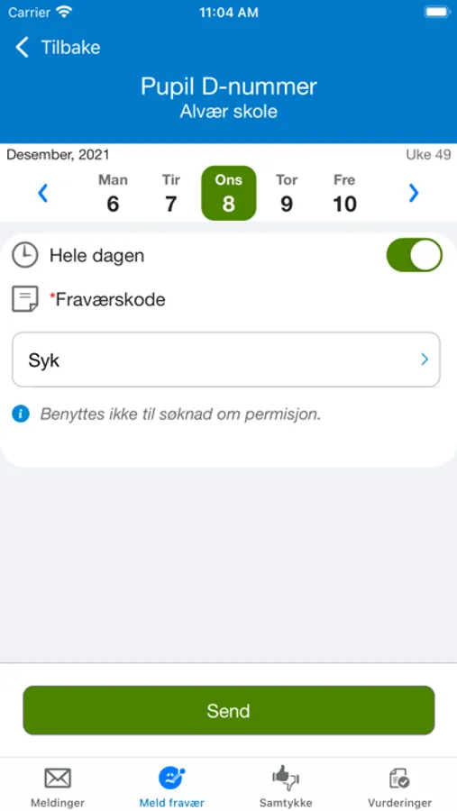 Eventuelle spørsmål og problemstillinger fra foresatte knyttet til appen skal meldes til skole/kommune, og ikke til systemleverandør (Visma).
