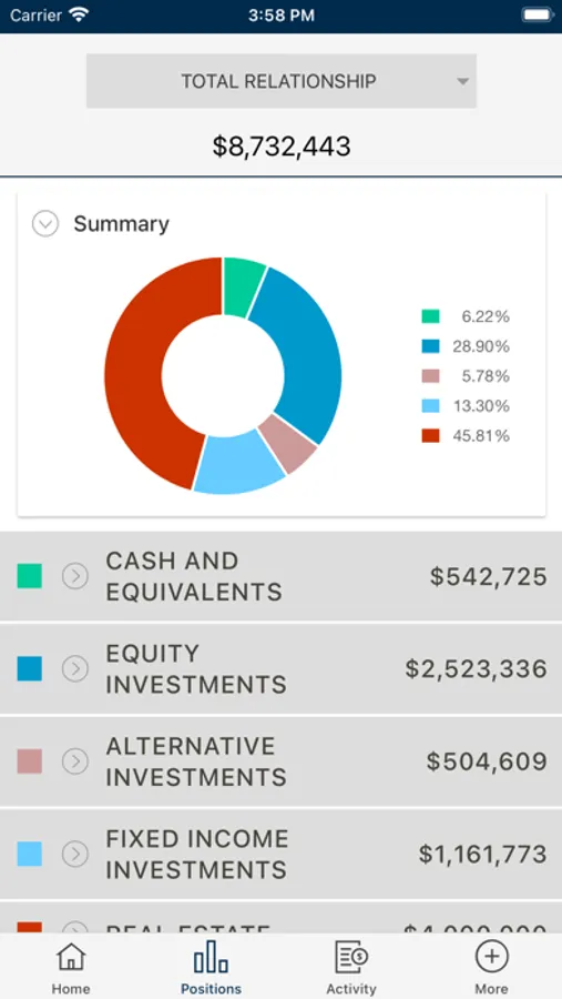 - A snapshot of your total portfolio on an aggregated basis or by individual account.