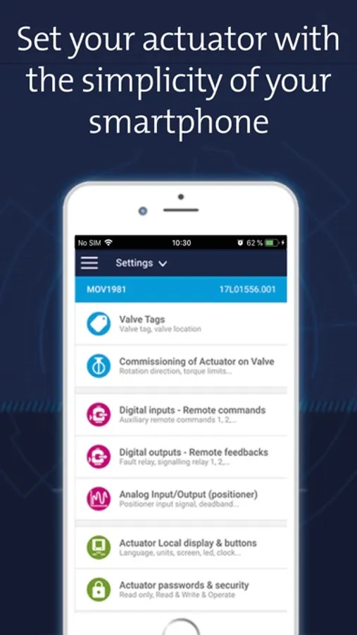 - Set your actuator with the simplicity of your smartphone