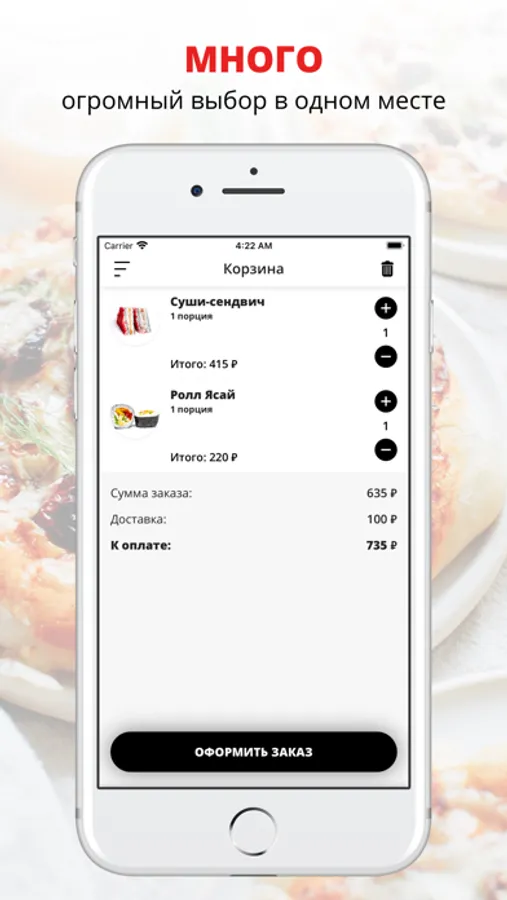 В нашем меню Вы всегда сможете найти для себя интересные предложения, новые блюда, скидки, а также индивидуальный подход к каждому клиенту. Мы дорожим своей репутацией, поэтому наши блюда готовят лучшие повара нашего города. Приготовление начинается стразу же после Вашего звонка. Все блюда готовятся только из свежих продуктов руками наших профессиональных поваров. Доставку осуществляют всегда опрятные и приветливые курьеры.